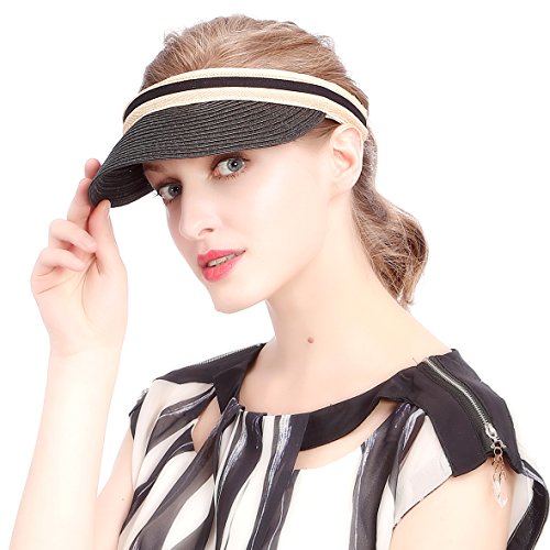 VECRY Donna Golf Visiera Sportiva Cappello Spiaggia Paglia Estate Visiere Berretto (Nero)