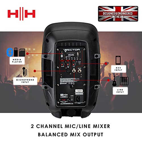 VECTOR by HH Electronics - VRE-8AG2 - Portable 300 W 8 inch 2-way active speaker with 2 Ch mixer, Bluetooth V5.0, SD & USB