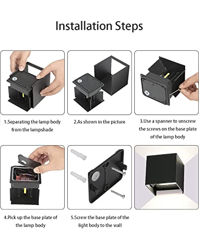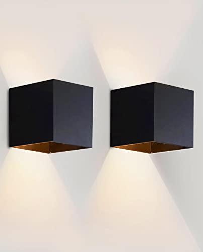 Vecys 2 Pezzi 12W Applique da Parete Interno Applique da Esterno IP65 Impermeabile Lampada da Parete LED Moderno Bianco Caldo 3000K Applique Cubo in Alluminio Angolo del Fascio Regolabile(Nero)