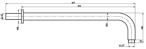 VeeBath curvo, 375 mm-Braccio per doccia, montaggio a parete Set doccia