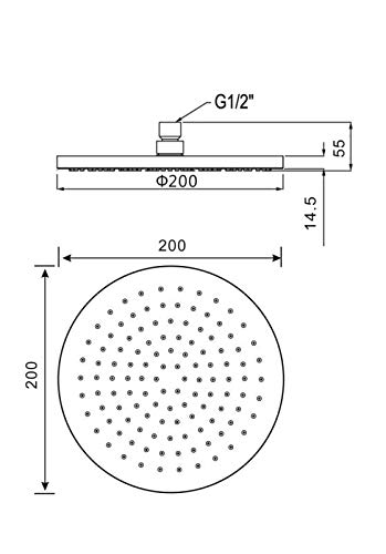 Veebath, Grande, 8 Pollici Soffione Doccia A Pioggia Mobile-Supporto Fisso 1/2", Con Connettore A Sfera, In Metallo Cromato Lucido