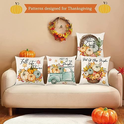 VEEKAY 4 Pezzi Federe per Cuscino 45X45cm,Ringraziamento Federe Decorative,Copricuscino in lino,Cuscino autunnale,per divano, camera da letto, ufficio, decorazione per casa