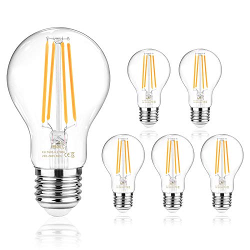Veelicht Lampadina LED E27 a Filamento, 6W (equivalenti a 60W), 800LM, Bianco Calda 2700K, E27 Edison standard, A19 Vintage Lampadine a LED, Confezione da 5 Unit