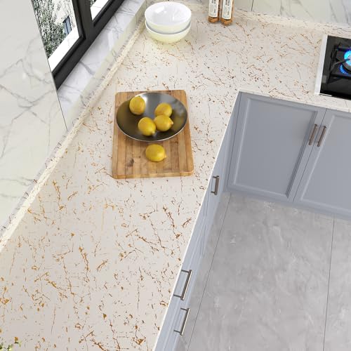 DIMENSIONE: carta adesiva marmo bianco oro 40 cm x 300 cm (15.7 "x 118"), coprire circa 1.2 ㎡ (1853 sq) area, si prega di misurare il posto o i mobili prima dell'acquisto