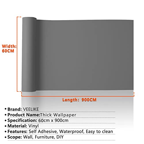 VEELIKE Carta da Parati Grigio Spessa 60cm x 900cm Pellicola Adesiva Grigia Opaco Vinile Carta Adesiva Cucina Lavabile Pellicola Autoadesiva Mobili Camera da Letto Rotolo Adesivo per Mobili Soggiorno