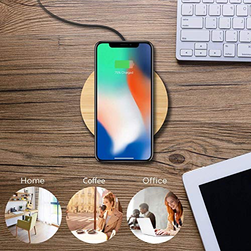 Veelink Bamboo Wireless Charger Pad 10 W Portatile Legno Wireless Ricarica Pad per iPhone SE 2020/11/Xs MAX/XR/XS/X/8/8, Samsung S20/S10/S9/S8/Note 20