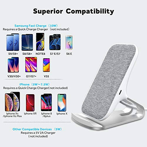 Veelink - Caricabatterie Wireless Veloce, 10 W, 7,5 W, 5 W, Supporto di Ricarica Wireless Compatibile con iPhone XR/XS Max/XS/X, Ricarica Rapida per Samsung Galaxy S10/S10+/S9/S9+ Note 9 e Altri