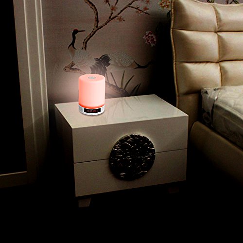 Veesee Colorato Lampada da Comodino con Altoparlanti Bluetooth, Mani libere Vivavoce, Sensore di tocco, Bambini Luce notturna, Micro SD scheda Fessura, Accessori Camera da letto, Dimmerabile, Sveglia, Lettore musicale, Decorazione dei vivaisti, Regalo di compleanno per Bambini Adolescente, Campeggio all'aperto, festa della mamma (Multi Colori)