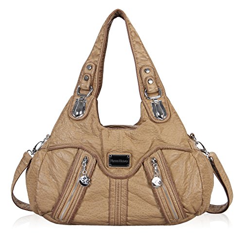 VEEVAN Borse da Spalla Vintage in pelle lavata (A-Nero)