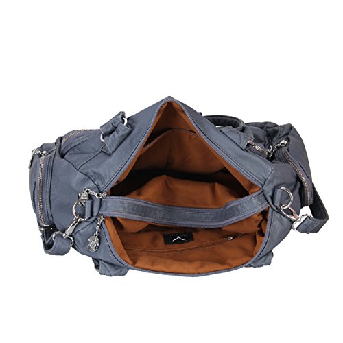 Veevan Borse da Spalla Vintage in pelle lavata (C-Blu)