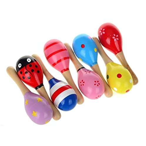 4 pezzi maracas Crepitio di legno agitatori giocattoli in un insieme saranno venduti insieme per colore e modello casuale.