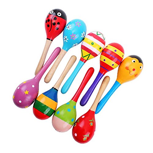 Veewon 4pcs 20 centimetri di legno Rattle Maraca Rattles Shaker Percussion bambini strumenti musicali Giocattoli, colore casuale