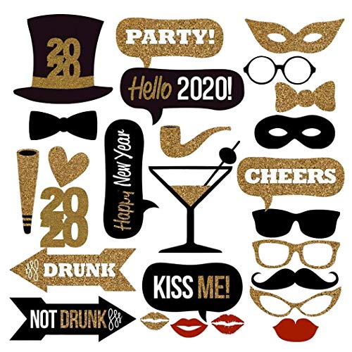 Veewon 2018 New Years Eve Partito Foto Props 26pcs Kit DIY Photobooth Maschere mascella Moustache Cappello Rosso Labbra Occhiali per Il Nuovo Anno Festa Decorazione Forniture