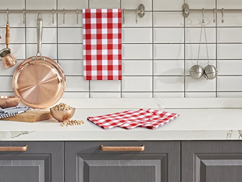 Veeyoo - Tovaglia in 100% cotone percalle, tovaglioli, strofinacci, diversi colori e misure, per la cucina o all'aperto, Cotone, Red+White, Dish Towel-14 x 20 inch (36 x 51 cm)