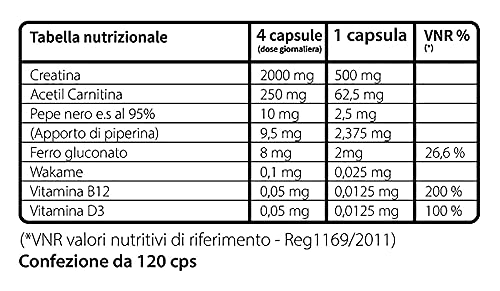 CON VITAMINA B12, D3, IODIO, FERRO, CREATINA, CARNITINA, PIPERINA