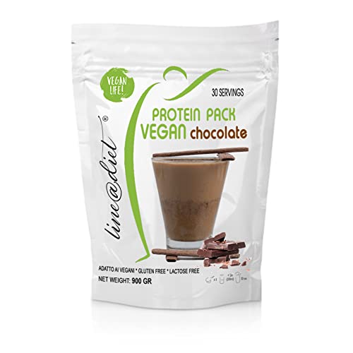 VEGAN Protein pack shake 900g CIOCCOLATO | GLUTEN FREE | LACTOSE FREE | Vegan protein shake line@diet, 30 porzioni con l'80% di PROTEINE per sportivi e per rimettersi in forma