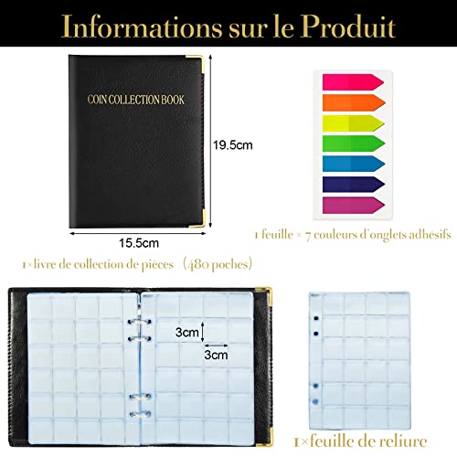 VEGCOO 480 buste raccoglitori di monete collezione in pelle album numismatico collezione di monete album numismatico collezione di penny con copertina rigida