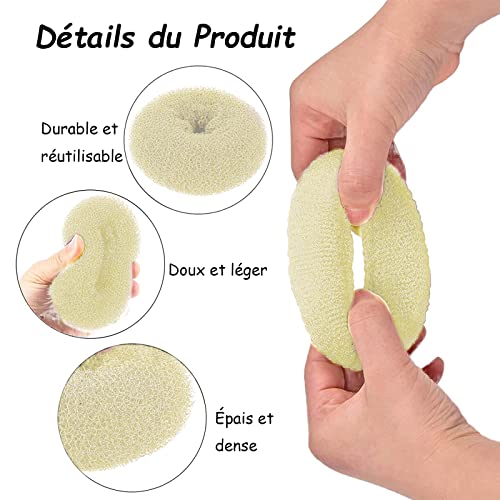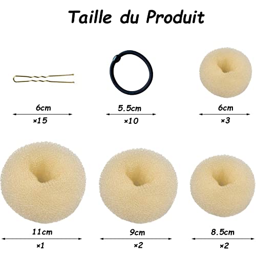 VEGCOO Chignon a Ciambella, 8 Pz Creatore per Pane Ciambella Chignon a Ciambella Magic Hair per Bambine e Donne, con 15 Elastici per Capelli e 15 Forcine Forma di U (Beige)