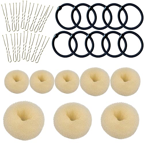 [✨Set di chignons]: il set comprende 33 accessori per capelli, tra cui 8 ciambelle biondo (extra-large, larga, media, piccola), 10 corde elastiche per capelli e 15 forcine per capelli dorate. Ben attrezzato e in quantità sufficiente per la tua bellezza quotidiana dei capelli.