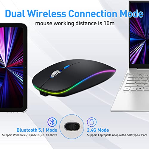 VEGCOO Mouse wireless ricaricabile, mouse per computer silenzioso, mouse wireless stabile da 2,4 G con luce LED, mouse portatile Type-C per Windows, Mac, laptop, desktop, MacBook(nero)