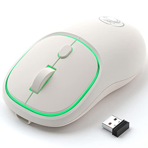 VEGCOO Mouse Wireless Ricaricabile, Mouse per Computer Silenzioso, Mouse Wireless Stabile 2.4G con Luce LED, Mouse Portatili Tipo C con Porta per Windows, Mac, Laptop, MacBook (Bianco)