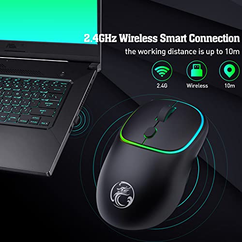 【Luce LED + click silenzioso】Il mouse ha un aspetto elegante, con luce respiratoria a LED, che emette luce colorata e può essere utilizzato in ambienti più scuri. Inoltre, il mouse è silenzioso e può essere utilizzato in ambienti tranquilli, come biblioteche, caffè, aule, ecc. Non devi preoccuparti di disturbare gli altri.