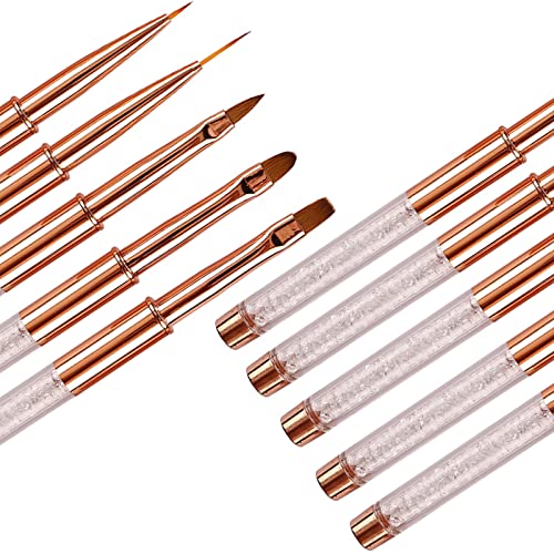 Kit pennelli unghie: Riceverai 5 pezzi di oro rosa pennelli unghie gel con dimensioni e funzioni diverse e 1 pezzo di bianco a due teste pennelli nail art. L'oro rosa pennelli per unghie contiene una penna di fodera, una penna angolata, una penna piatta, una penna rotonda e una penna acrilica. Abbastanza per soddisfare le tue esigenze quotidiane per la nail art fai -da -te.