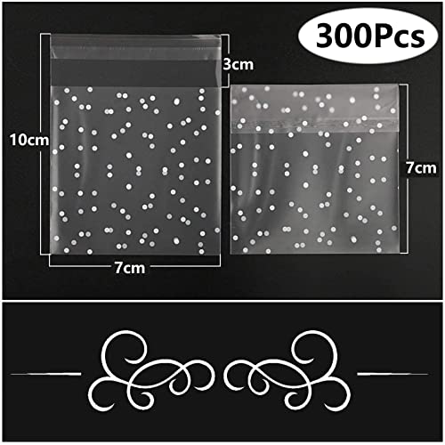 VEGCOO 300 Pezzi Sacchetti Richiudibili Trasparenti, Sacchetti per Biscotti Autoadesivi Bustine Trasparenti per Confetti per Biscotti, Dolci, Regali, Cioccolato(7x7cm) (A)