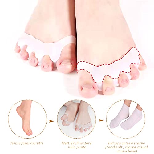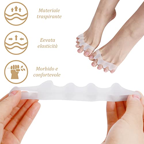【Qualità eccellente】 Il separatore dita piede è realizzato in tessuto elasticizzato e gel, morbido, delicato sulla pelle, elastico, leggero e traspirante e comodo da indossare. Dimensioni universali, possono essere utilizzate da adulti, adolescenti, ragazzi e ragazze senza tenuta.