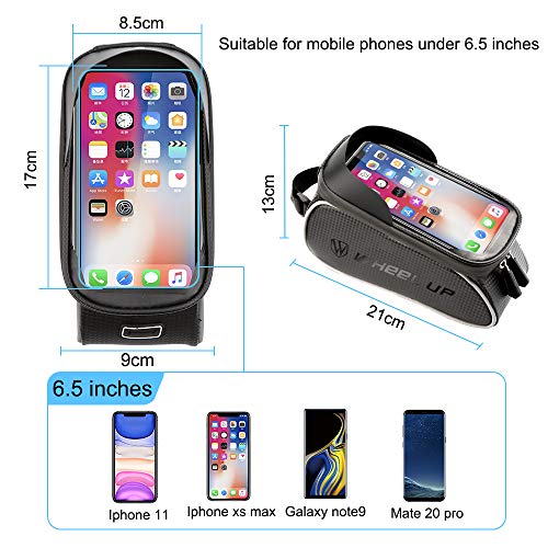 Vegena Borsa Telaio Bici, Porta Cellulare Bici, Impermeabile Borsa da Manubrio per Biciclette con Touch Screen Visiera Solare Portacellulare Grande Capacità Adatto per Telefoni Sotto 6,5 Pollici