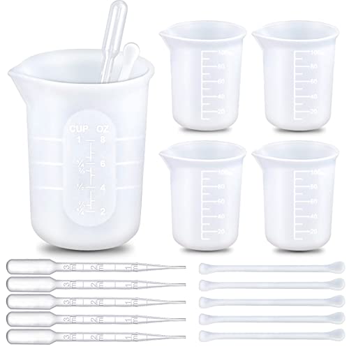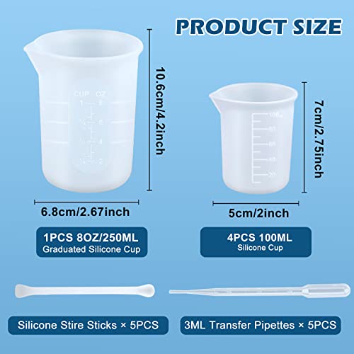 Vegena Misurino in silicone per resina, con 1 pezzo da 250 ml + 4 bicchieri da 100 ml, riutilizzabili con asta miscelatrice e pipetta per fai da te, resina epossidica, gioielli fai da te