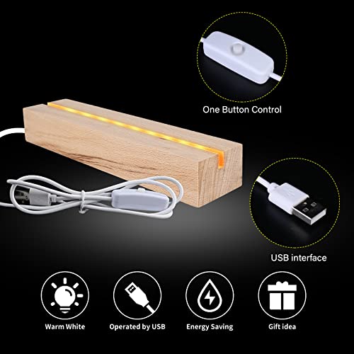 Vegena 2 Pezzi LED Luci Display Base, Base Luce Led Legno con USB, Base Rettangolare con Led per Lastra in Acrilico, Lastra in Cristallo (Lunghezza 15 cm, Bianco Caldo)