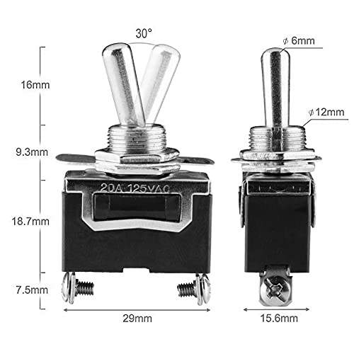 ➣【Facile da Installare】 Interruttore a Levetta SPST Ciascuno dei terminali ha 2 viti per connessioni rapide, ma anche facili da saldare.Il diametro del foro di montaggio è 12 mm. L'interruttore di connessione solido rende più comodo il funzionamento.