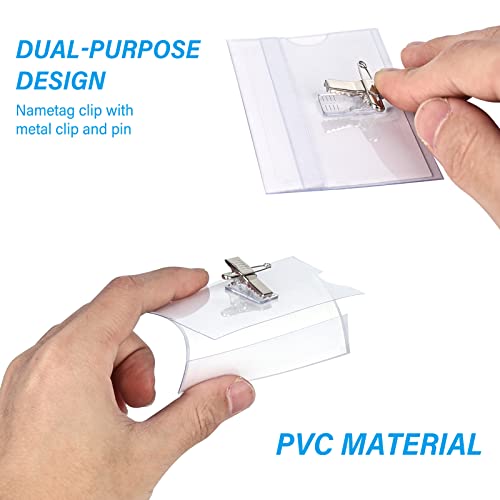 Vegena 50 Pezzi Porta Badge Plastica con Clip, Porta Tesserino con Clip, Porta Badge Orizzontale con Clip, Badge Portanome Trasparente con Clip e Spilla per Scuole, Conferenze, Ufficio, 90 × 56 mm
