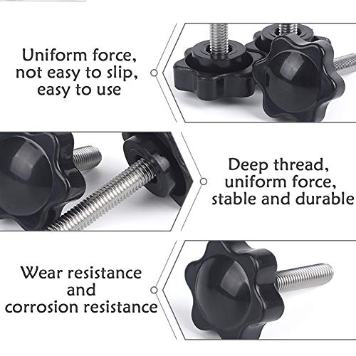 Materiale di alta qualità: la vite a stella M8 è realizzata in plastica e acciaio. Ha buone prestazioni di resistenza alle alte temperature, alla corrosione, all'invecchiamento e all'isolamento. Pomello a forma di stella ideale per macchine utensili.