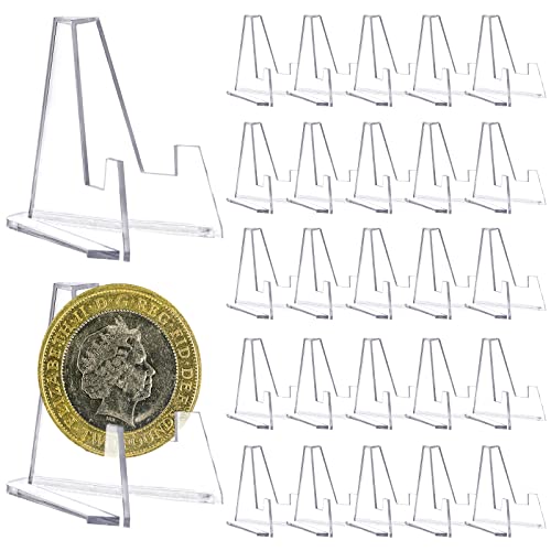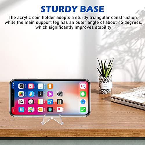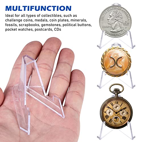 Multifunzione: questi supporti trasparenti per monete sono perfetti per riporre monete, medaglie, telefoni, distintivi, immagini, orologi da tasca, piccole carte, CD, cartoline e altri piccoli oggetti. Il cavalletto trasparente mostra perfettamente la bellezza della collezione.