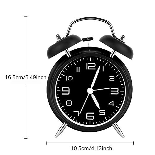 Vegena Sveglia a Doppia Campana, Sveglia da Comodino Segnale d'allarme a Volume Elevato Quarzo Analogico Sveglia Viaggi Vintage 4 Pollici Grande Quadrante Senza Ticchettio con Luce Notturna(Nero)