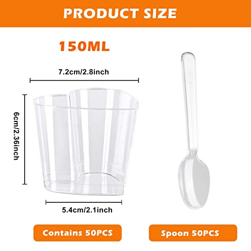 Vegena 50 tazze da dessert - 150 ml in plastica con cucchiaio, mini tazza da dessert, bicchieri da dessert trasparenti riutilizzabili in plastica per dessert, budino, mousse party (a forma di cuore)