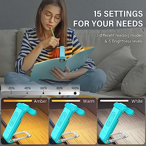 【15 regolazioni per le vostre esigenze】 La nostra piccola luce di lettura per libri ha 3 diverse modalità di lettura, 5 livelli di luminosità. Che vi piaccia la luce ambrata, bianca o soffusa, la nostra luce per libri ricaricabile USB può soddisfare perfettamente le vostre esigenze.