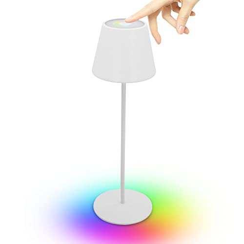 VELAMP Lampada da tavolo LED Ricaricabile, Dimmer touch, bianco + RGB, IP54. Bianco
