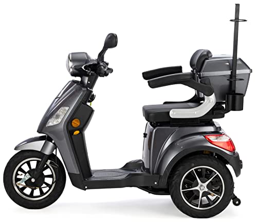 VELECO DRACO LIT-ION - Scooter Disabili a 3 ruote - Completamente assemblato e pronto all'uso - Batteria agli ioni di litio rimovibile - Freno elettromagnetico - Porta bastone da passeggio (GRIGIO)