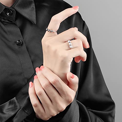 VELESAY Ansia Anelli Argento Sterling 925 Anelli per Donne Ragazze Anelli Spinner con Perle Anelli Sottili Regolabili Impilabil Fidget Anello Antistress Ruota Liberamente Anelli Regolabili Donne
