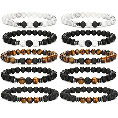 VELESAY 5 Pezzi Pietre Naturali Bracciali Lavica Elastico Perline per Braccialetti Occhio di Tigre Set Bracciali Pietra Lavica Bracciale Uomo Donna Regalo di Anniversario per Uomo Pietre Naturali