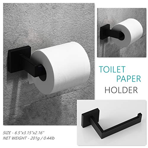 VELIMAX - Set di 4 accessori da bagno, in acciaio inox, con gancio per asciugamani, porta carta igienica, porta asciugamani, barra per asciugamani, colore nero opaco