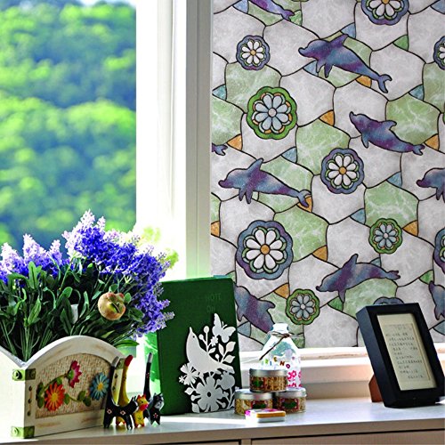 VELIMAX Senza Colla Statica Privacy Pellicola per Finestre Design di Delfino Pellicola Colorata di Vetro Anti-UV (60CM by 200CM)