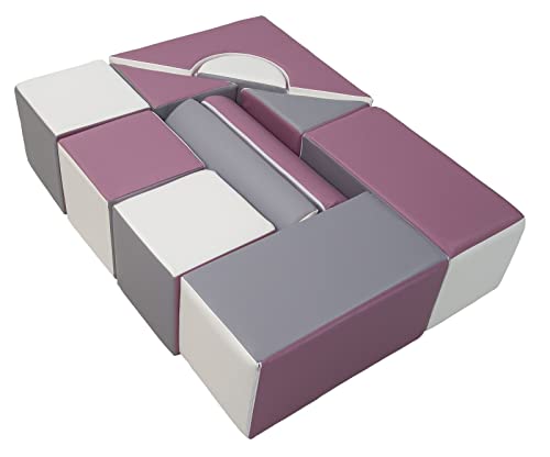 Velinda Completo 11 Grandi Mattoni,Blocchi,cubi in Schiuma Gioco Bambino, Scuola Materna (Colore: Bianco, Grigio, Viola)