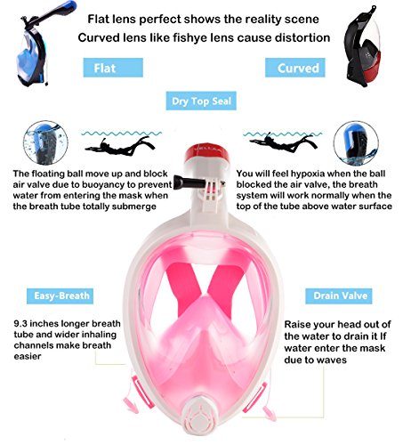 ★【FUNZIONE ANTI-FOG】Per visualizzare un mondo sottomarino più limpido e colorato, la maschera facciale completa di rivestimento anti-appannamento e creazione dell'innovativa camera di respirazione, fornisce un flusso d'aria ottimizzato, facilita la respirazione durante il nuoto e aiuta a eliminare l'appannamento e manterrà fai snorkeling più a lungo