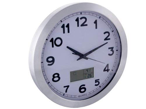 Velleman Orologio da Parete con Display LCD - Termometro, Igrometro e previsioni Meteo - Alluminio - Ø 35 cm - WC35