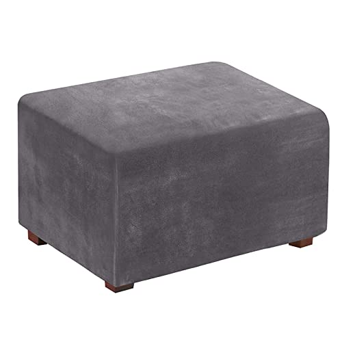 Velluto Copri Pouf Rettangolare, Pieghevole Copri Poggiapiedi Quadrato Elasticizzato Morbido Antiscivolo Copertura Dell'Ottomano Lavabile Sofa Protettore per Bambini Animali-Grigio-S