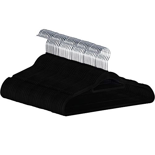 Velluto ultra sottile spazio di risparmio antiscivolo appendiabiti 45 cm/17,7 pollici, Lifetime pacchetto di garanzia di sostituzione di 50, nero